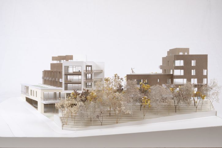 Construction d’un ensemble de logements avec un commerce et des équipements.